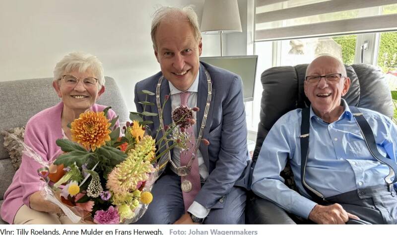 OUDENBOSCH - Op maandag 7 juli 2025 waren Frans Herwegh (88) en Tilly Roelands (89) maar liefst 65 jaar met elkaar in de echt verbonden. Het echtpaar woont nog steeds geheel zelfstandig. Namens de gemeente Halderberge kwam burgemeester Anne Mulder het briljanten paar van harte feliciteren.
