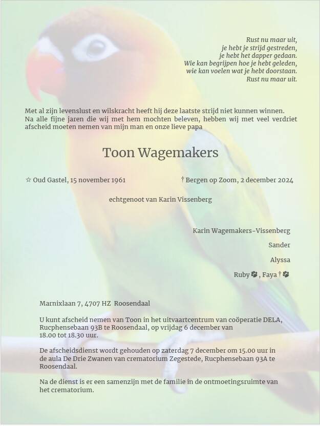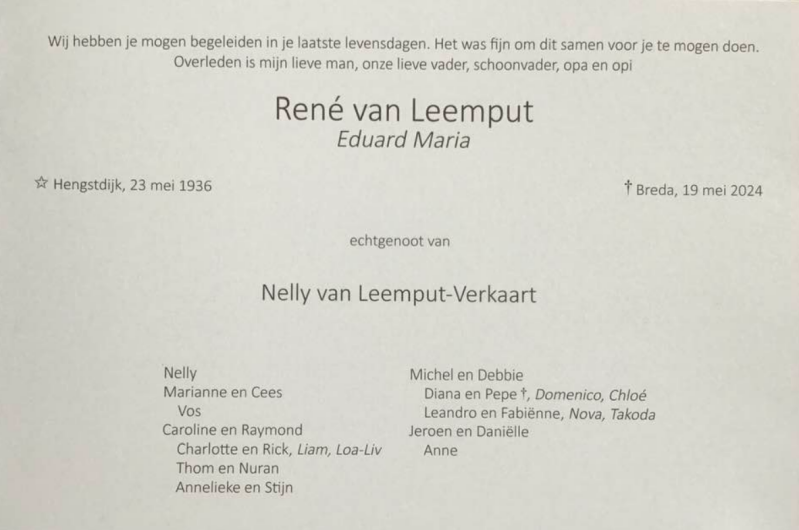 Overlijden Ben Krämer (71 jaar).