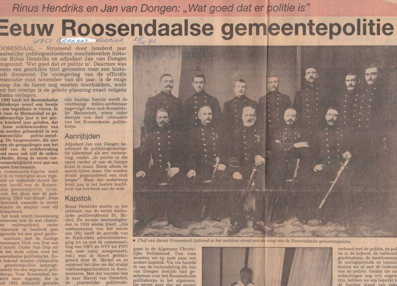 in samenwerking met Rinus Hendriks, de historie van de gemeentepolitie Roosendaal en Nispen vastgelegd.